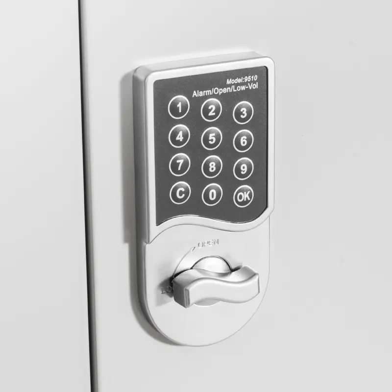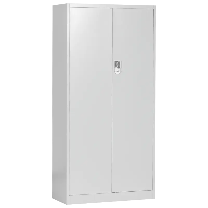 Архивен шкаф BTL EK с 5 отделения 185х90х40 см е голям метален шкаф за документи с плътни врати и 4 рафта с регулируема височина. Шкафът е с електронно заключване и се отключва чрез парола за по-голяма сигурност на важната документация.