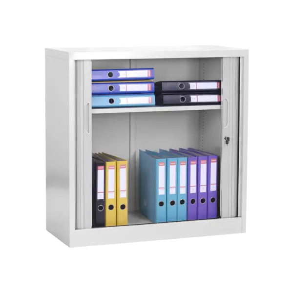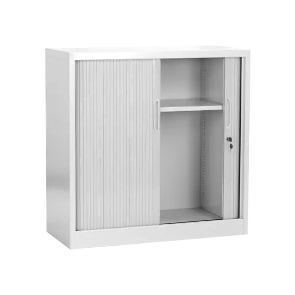 Архивният шкаф BTL J разполага с две ролетни врати и рафтове с регулируема височина.