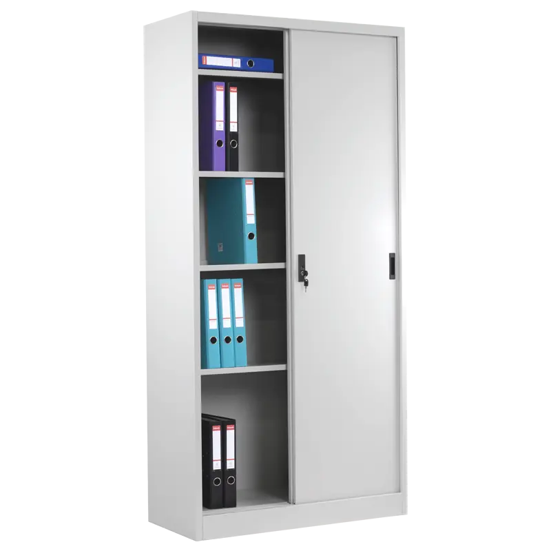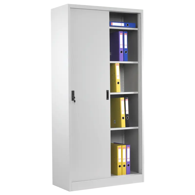 Архивен шкаф BTL J с 5 отделения 185х90х40 см е метален шкаф за документи с плъзгащи врати със заключване. Той разполага с 4 рафта с регулируема височина и товароносимост до 40 кг за всеки.
