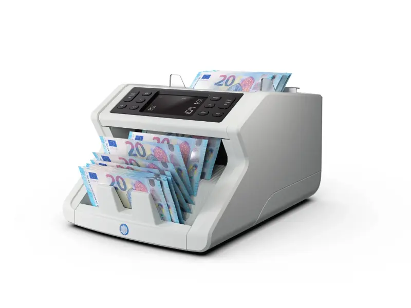 Надеждна, бърза и лесна за използване, Safescan 2210 G2 е незаменим помощник за всяка фирма. Скорост от 1000 банкноти в минута и практични функции, включително голям и ясен LCD дисплей, UV детектор за откриване на фалшиви банкноти. Също така има и функции за сборуване и броене по предварително зададени партиди, както и автоматичните старт и стоп. В допълнение се проверява размера на банкнотите и звукова аларма предупреждава, когато банкнота с различни размери е открита по време на преброяването.