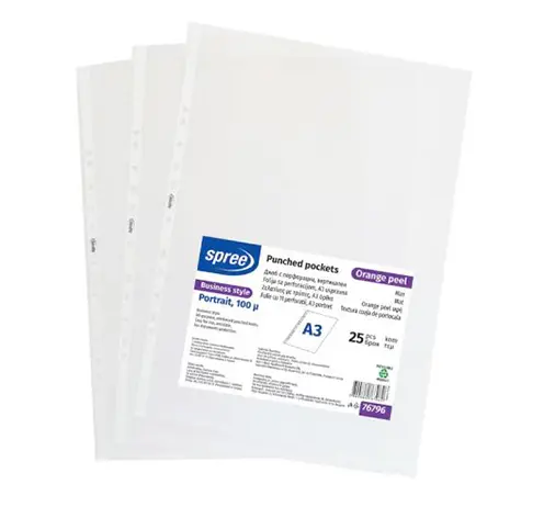 Джобът за документи А3 мат вертикален 25 бр е подходящ за всички папки и класьори, защото притежава универсална перфорация.