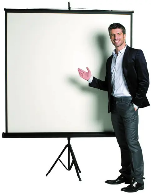 Екранът на стойка 180х180 см е екран за проектор на стойка трипод. Той представлява нискобюджетен олекотен вариант, подходящ за предна прожекция само в затъмнени помещения. Екранът е оборудван с изцяло бяло PVC прожекционно платно с превъзходна отразителна способност. С черен телескопичен статив с регулируема височина и капачки на крачетата против приплъзване. Снабден е с удобна за носене пластмасова дръжка. Подходящ е за бизнес, учебни и развлекателни приложения.