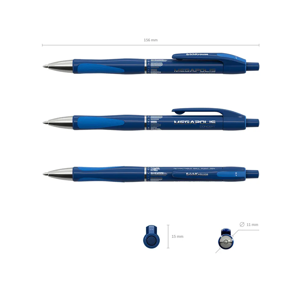 Megapolis Concept синя е автоматична химикалка, с която лекотата при писане е гарантирана. Ергономичната форма придава удобство и комфорт при писане.