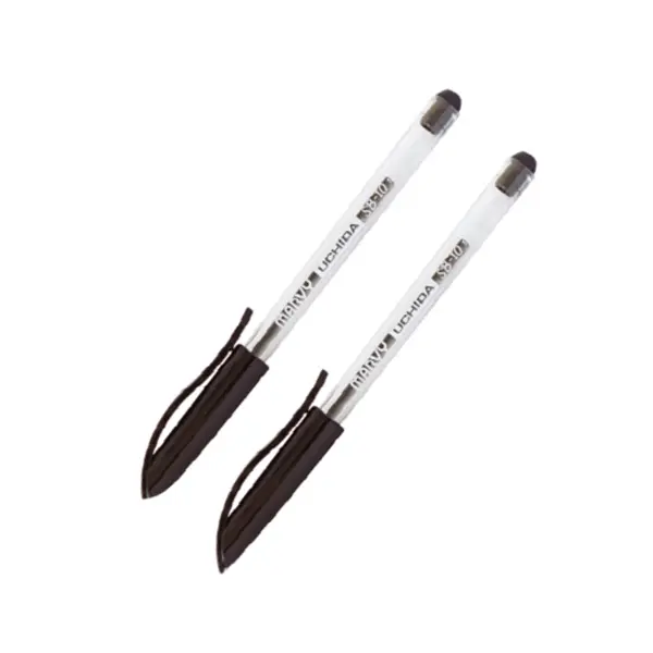 Химикалка Marvy Uchida черна има прозрачно тяло, даващо възможност за следене нивото на мастилото. Цветът на капачката отговаря на цвета на мастилото.