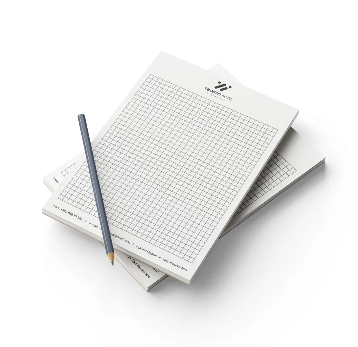 Блокнотите са незаменим помощник в ежедневието – както в офиса, така и у дома. Те са идеални за водене на бележки, записки от срещи, задачи, идеи или като фирмени подаръци с персонален дизайн. Предлагаме изработка на блокноти по индивидуален проект или по готов файл.