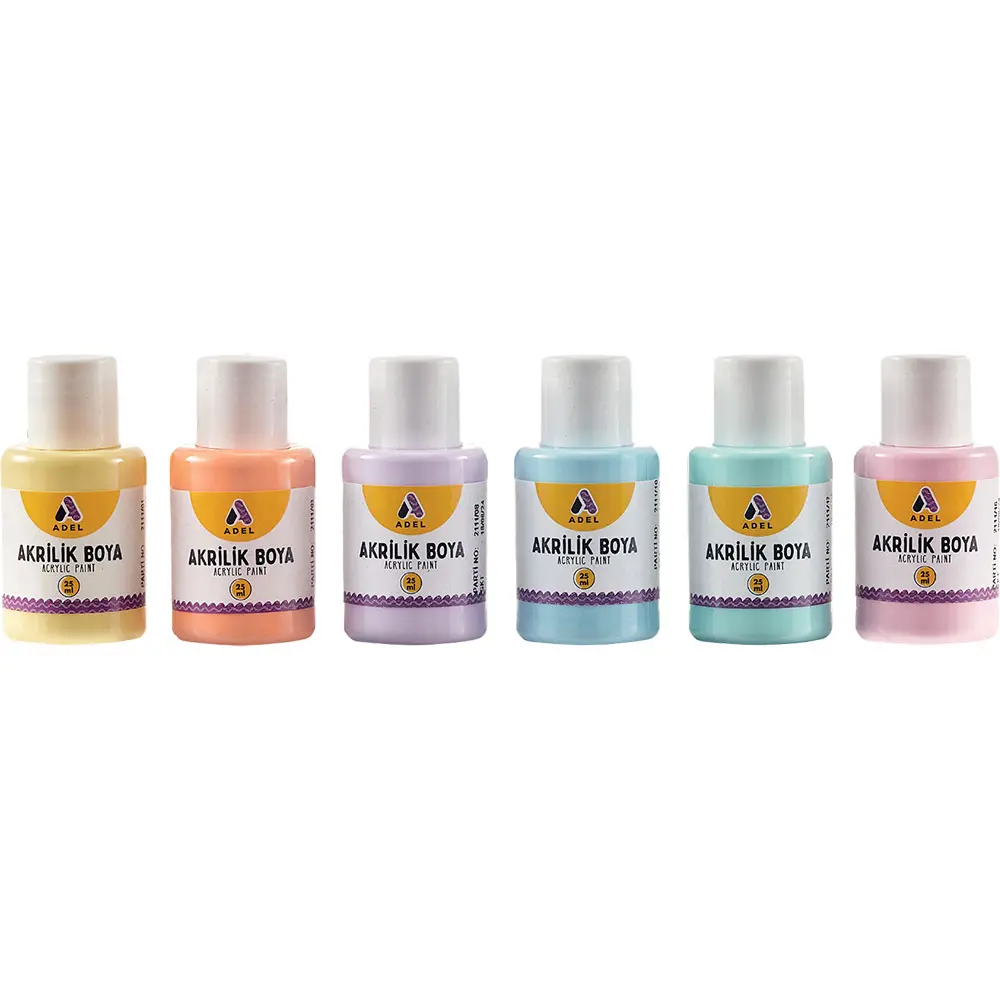 Боя акрилна Adel Pastel Colors е водоразтворима. Комплектът съдържа 6 бурканчета от 25 мл в пастелни цветове. Боичките са без мирис и лесно се почистват с вода и сапун.