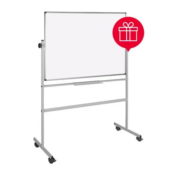 Мобилната бяла дъска 100х150 см е практична училищна и презентационна мебел. Благодарение на подвижните колелца дъската може да се използва в многобройни помещения и класни стаи, като по този начин е и нискобюджетно решение. Също така бялата дъска предоставя фунцията за хоризонтално завъртане, като по тази начин може да се използва двустранно. Заключващият се механизъм пък осигурява стабилност при работа.
