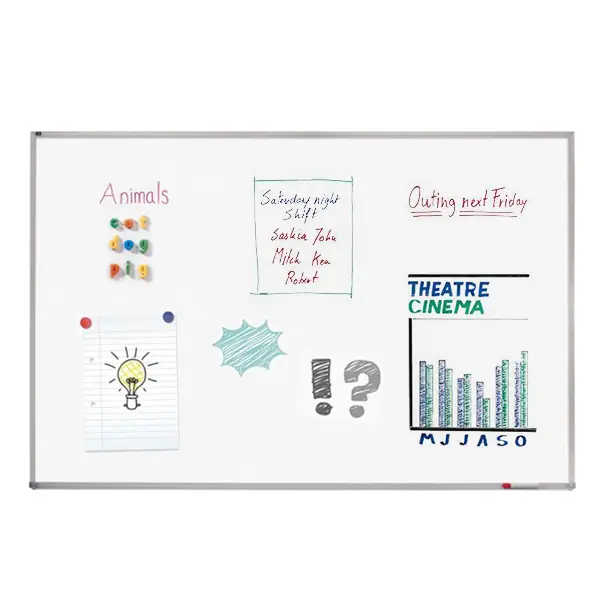 Бяла магнитна дъска с алуминиева рамка 60х90 см - снимка на дъската отпред, с рисунки върху нея