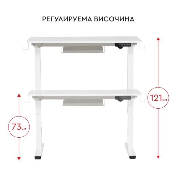 Бюро регулируемо КУКУШ B12 е с регулируема височина от 73 до 121 см. То е с електронен панел за управление, от който можете да запаметите и 4 позиции с различна височина. Освен това, моделът разполага със сензор против сблъсък, USB портове, кошница за кабели и удобни закачалки.