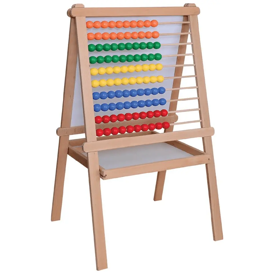 Дървено сметало с бяла дъска 44х54х110 см съчетава класическо сметало с разноцветни пластмасови топчета и практична немагнитна бяла дъска с площ за писане. Изработено от висококачествено дърво и ламинат, то е стабилно и подходящо за ежедневно използване в детски градини, предучилищна подготовка и началните класове. Сметалото помага на децата да усвоят цветовете, формите и основните аритметични действия по забавен и интересен начин. Дъската предоставя възможност за писане и рисуване, а удобната поставка за маркери улеснява обучението. Подходящо за деца над 3 години.