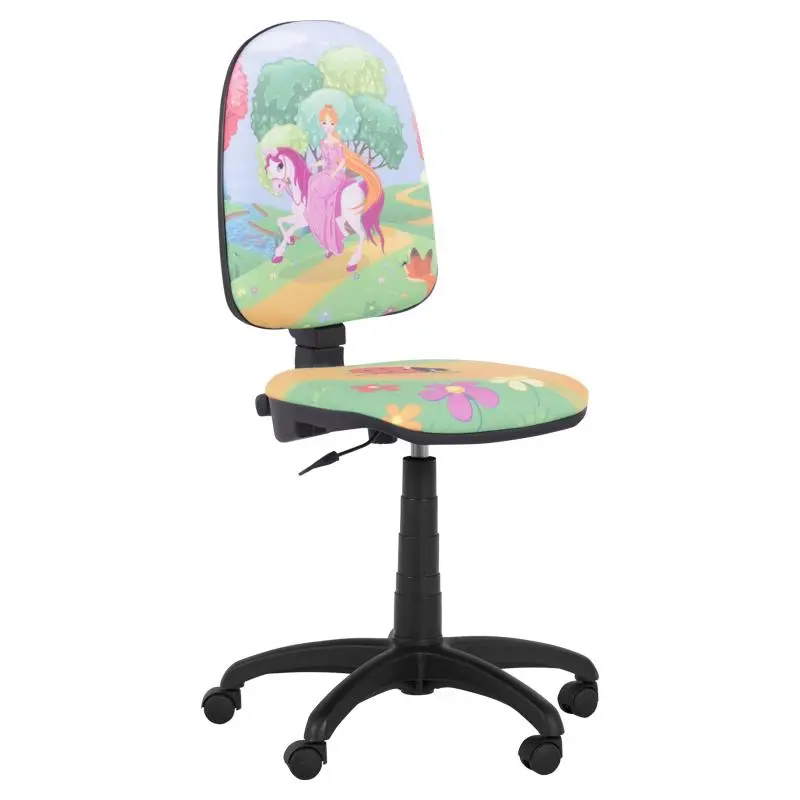 Детски стол ПРЕСИАН принцеса е удобен и функционален стол с качествена дамаска. Акцент при стола е апликацията на дамаската, която е с анимационни мотиви и пасва изключително добре на цветния интериор на детската стая.