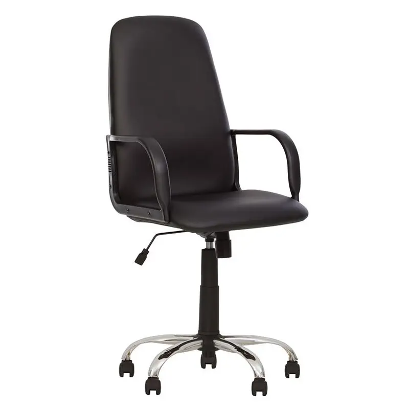 Директорски стол ДИПЛОМАТ е със здрава метална основа с хромирано покритие. Плавно и безстепенно регулиране на височината. Моделът е с механизъм TILT, осигуряващ функцията люлеене и заключване в изходна позиция. Седалката и облегалката са тапицирани в еко кожа в черен цвят.