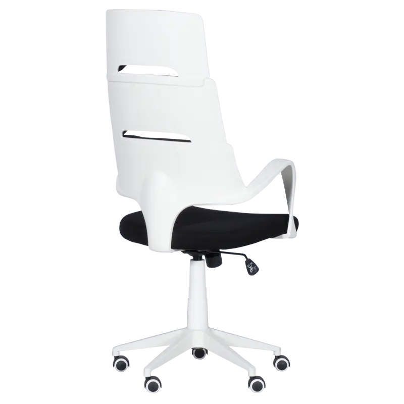 Директорски стол ИЧЕРА приковава вниманието със своя модерен и нестандартен дизайн. Неговата голяма седалка, висока облегалка и извити подлакътници ще ви осигурят удобството, което заслужавате, а за още по-голям комфорт столът има функция за регулиране на височината и люлеещ механизъм.