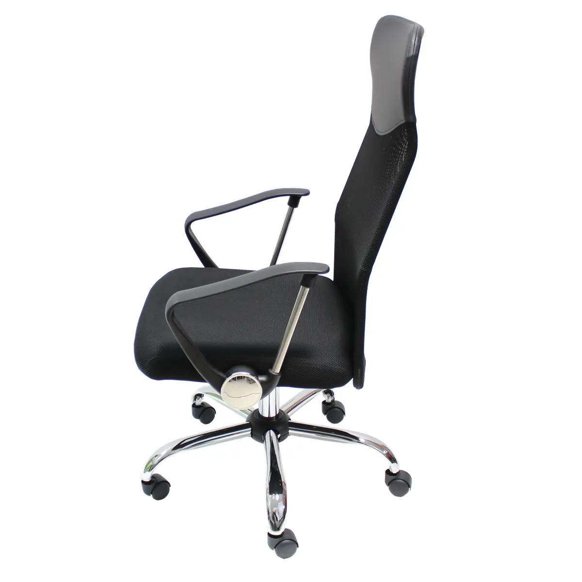 Директорски стол MONTI меш съчетава модерна визия и здрава хромирана основа. С него ще се радвате на комфорт благодарение на високата облегалка, регулируемия люлеещ механизъм и удобните, леко извити подлакътници.
