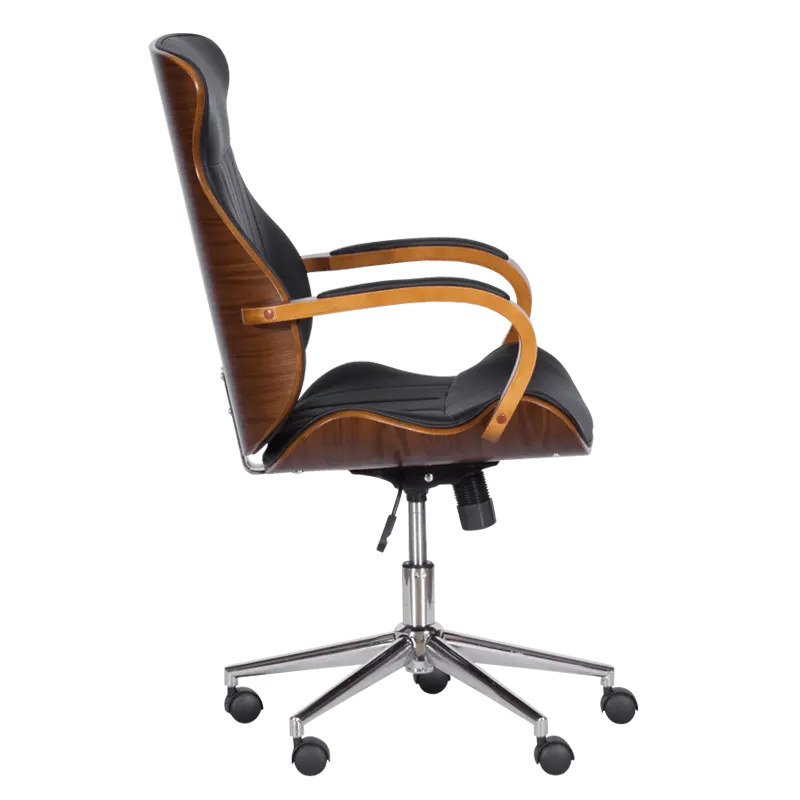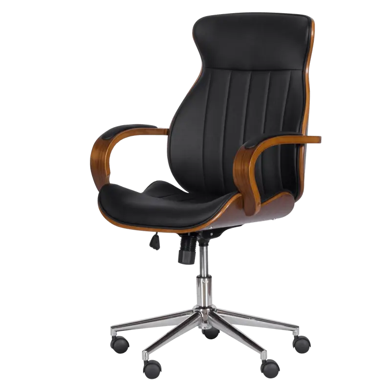 Директорски стол ПИМЕН е удобен и стилен модел с луксозен дизайн, който съчетава дърво, хром и черна еко кожа. Ако търсите елегантна визия, комфорт и висококачествена изработка, той е идеалният избор.