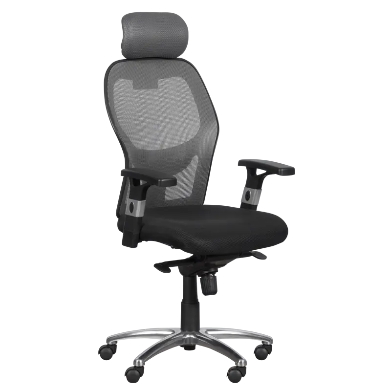 Директорски стол ВАЛЕРИ съчетава съвременен дизайн и висока функционалност. Удобен подглавник, лумбална опора, коригиране на подлакътниците, заключване в позиция, люлеене и регулиране на височината – той ще ви предложи всичко това, за да ви осигури комфорта, който заслужавате по време на работа.