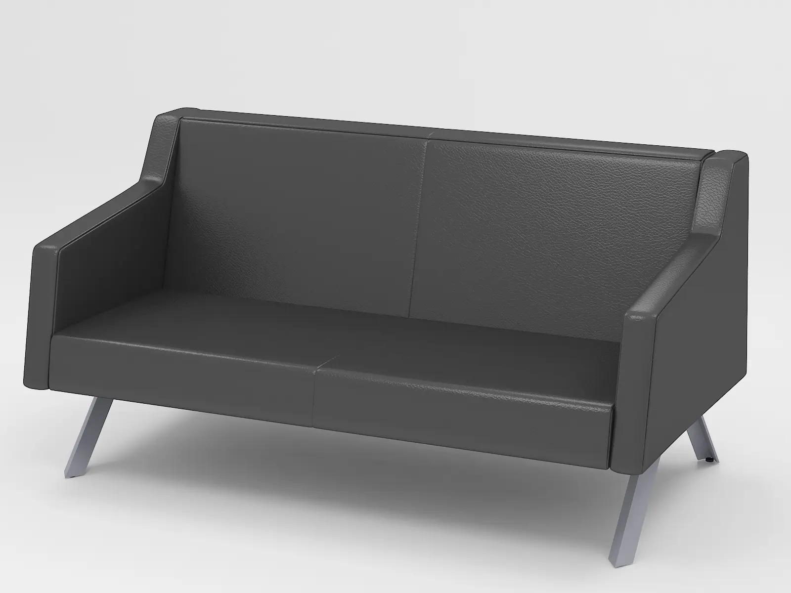 Диван двуместен ПИРОТ KUKA 02 е с модерен геометричен дизайн, широка облегалка за максимален комфорт и разчупени тапицирани подлакътници със заоблени краища.