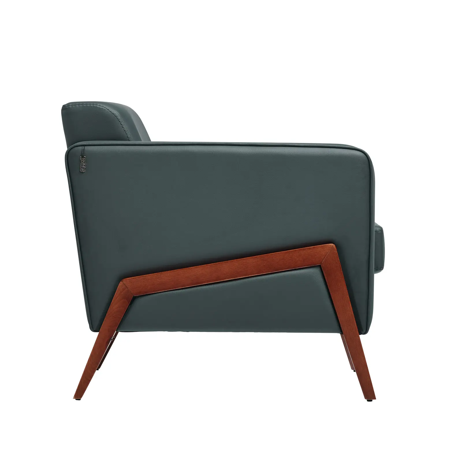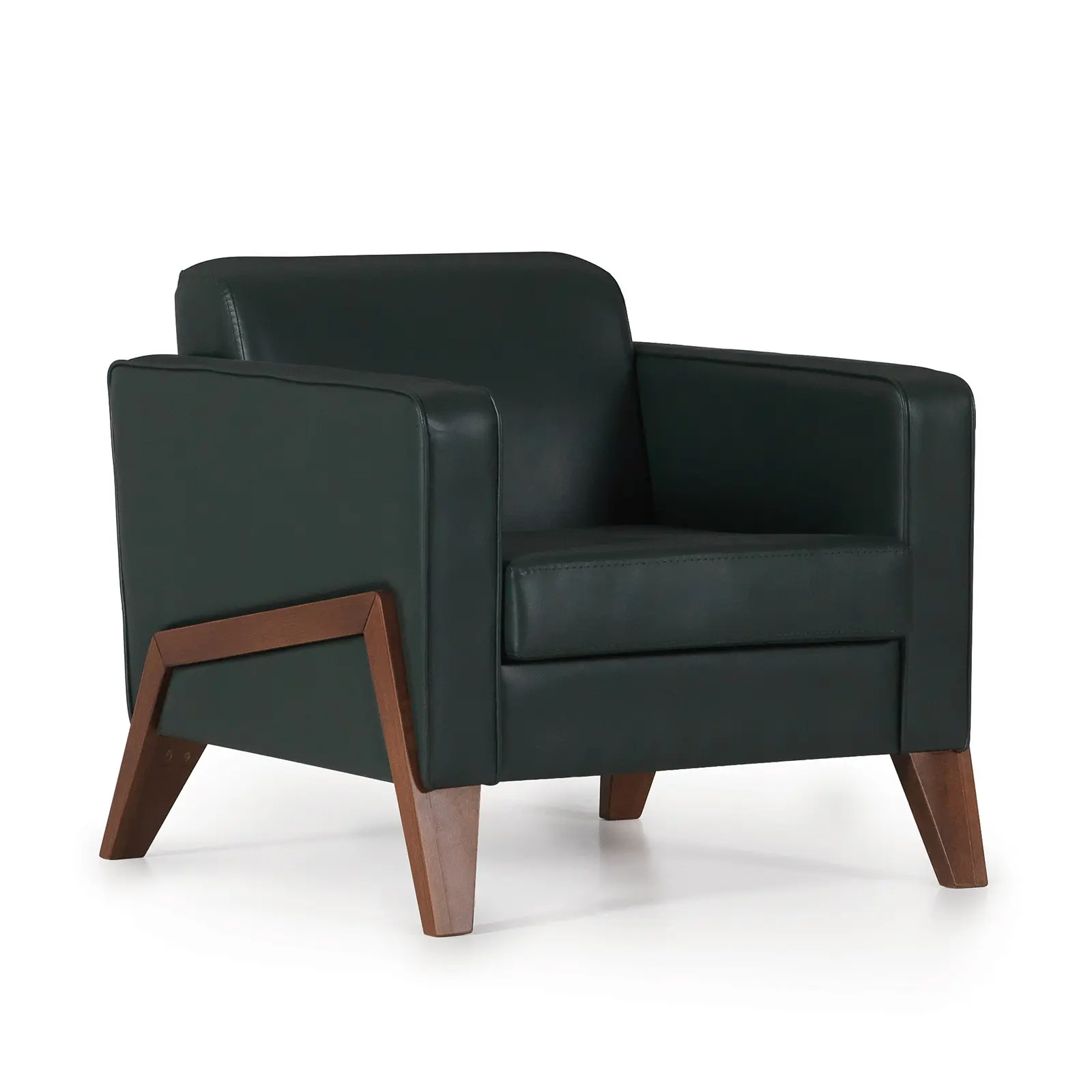 Едноместният диван ОКОЛЧИЦА е тапициран с мека на допир еко кожа, гарантираща удобно и елегантно пространство за отдих. Допълнителен акцент е постигнат с дървената рамка, която не само осигурява опора и стабилност на цялата конструкция, но и го прави запомнящ се.