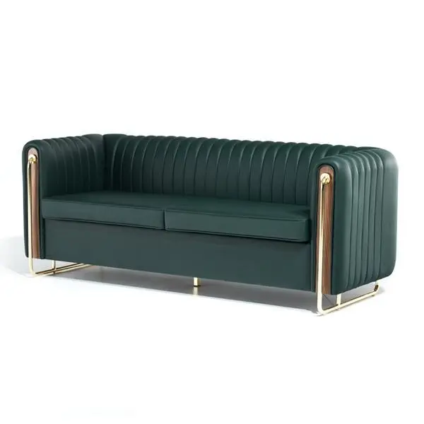Диван триместен СТРУГА GLD 03 - тъмнозелен, с златни орнаменти, сниман отпред
