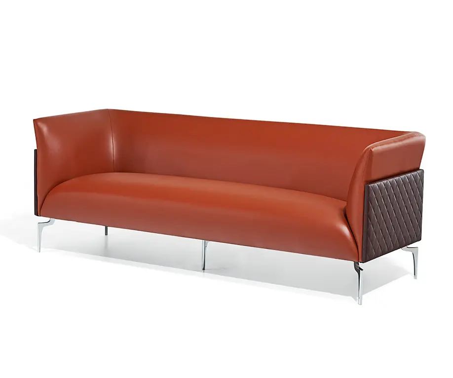 Триместния диван СТРЯМА грабва вниманието със своя очарователен дизайн, който комбинира квадратни форми и двуцветни кожени акценти. Моделът е с модерна визия и здрава конструкция от кожа и хромиран метал.