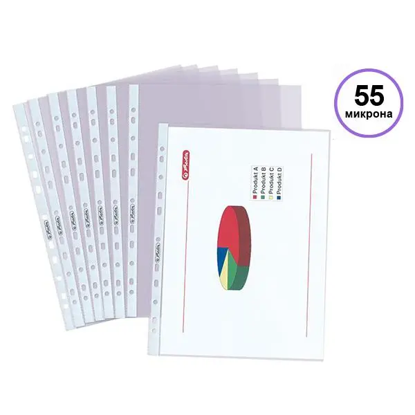 Джобът за документи А4 кристал 55 микр 100 бр е подходящ за всички папки и класьори, защото притежава универсална перфорация.