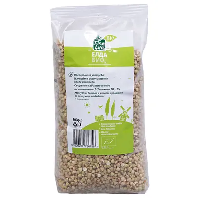 Елда Fine Life е био продукт в опаковка от 500 гр. Тя е една от най-чистите храни, защото нейното отглеждане не изисква употребата на химически препарати. Не съдържа глутен и е богата на витамини А, В, E и фибри, които подобряват храносмилането.