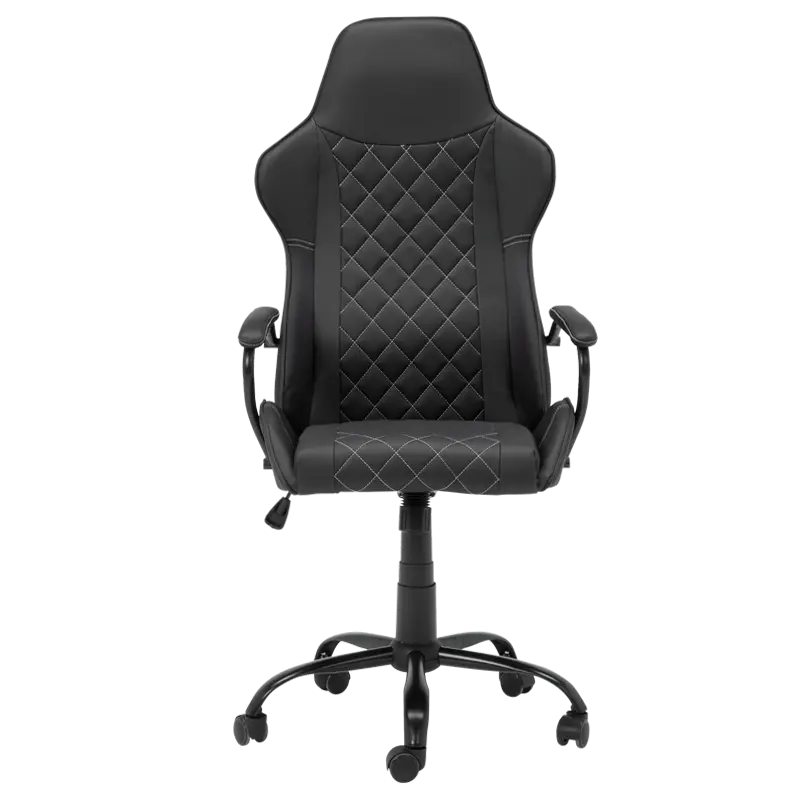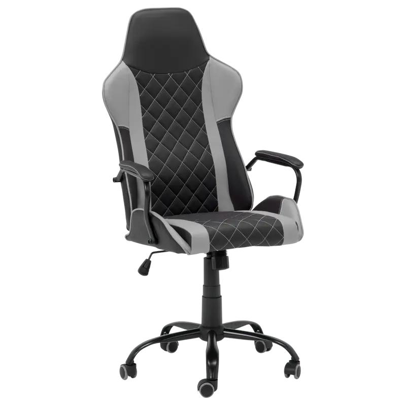 Геймърският стол ДЪСТ е геймърски стол с атрактивна визия и здрава основа от праховобоядисан метал и силиконови колелца. Той е с регулируем люлеещ механизъм и функция за коригиране на височината.
