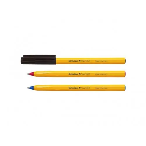 Химикалка Schneider Tops 505 F притежава изчистен дизайн с жълт корпус. Класическата синя химикалка е удобна при писане и водене на записки.