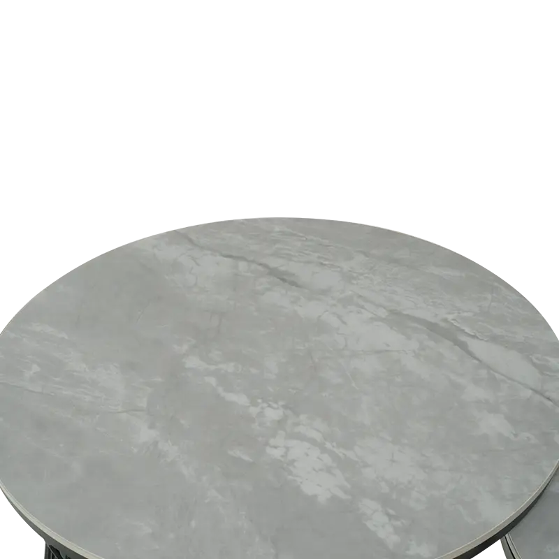 БЕЛОСЛАВА са комплект практични холни масички с интересен дизайн. Те са изработени от керамичен плот и стабилна основа от праховобоядисан метал. Моделът е подходящ за разнообразна употреба и може да бъде използван както като помощна масичка така и за декорация в любимата ви стая.