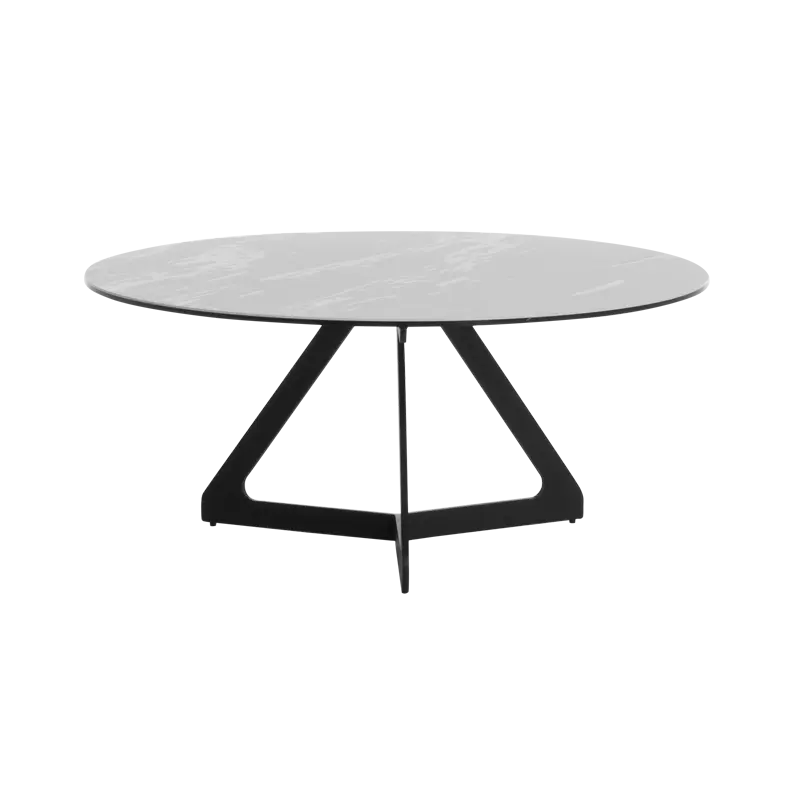 Холната маса БЛАГОМИРА е модел с изчистен и съвременен дизайн. Плотът ѝ е изработен от керамика и закалено стъкло, а основата от праховобоядисан метал, в елегантен черен цвят.
