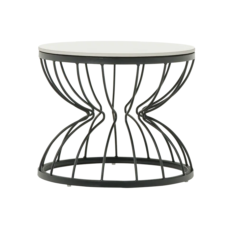 Холната маса ДАНТЕ е компактна холна масa с керемичен плот с интересна форма и здрава основа от праховобоядисан метал.