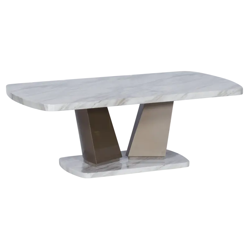 Ако търсите различна и стилна холна маса, НИЯ е създадена по ваш вкус. Освен с изискана визия, моделът се отличава и с висококачествена изработка от МДФ материал. Плотът и част от основата са с мраморна шарка, което създава усещане за класа и лукс.
