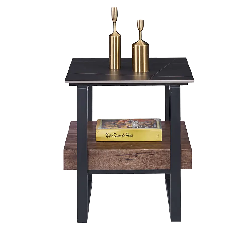 Холна маса САЛИНА комбинира модерен дизайн и функционалност. Тя е с височина 50 см и разполага с два плота - горният е изработен от керамика, а долният от МДФ с дървесно покритие. Стабилността на модела се дължи на основа от праховобоядисан метал.