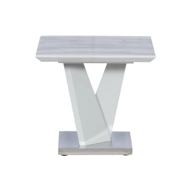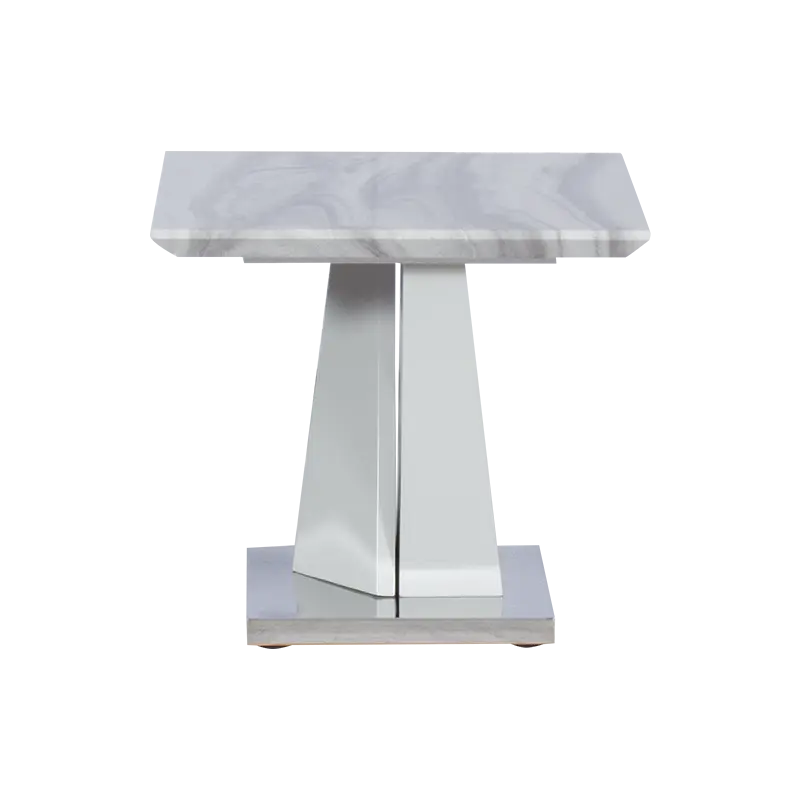Холна маса ВЕЛИЯНА е стилна холна маса с интересен дизайн, който създава усещане за лукс в помещението. Моделът е изработен от висококачествен МДФ материал с дебел плот, чиято горна част наподобява шарките на мрамор, а за долната част на основата е използвана неръждаема стомана.