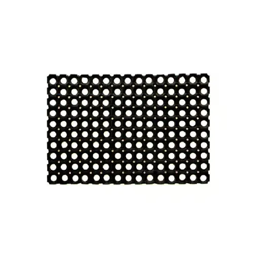 Гумената изтривалка с размери 50х100 см е изключително подходяща за външна употреба. Тя е отличен избор за всякакви входни пространства като къщи, гаражи, офиси, магазини, лаборатории, спортни съоръжения и дори индустриални или професионални среди. Изтривалката е устойчива на студ, влага, кал, химикали и неблагоприятни атмосферни условия. Специалната ѝ структура с плътна пита и повдигнато дъно позволява ефективно оттичане на водата, поддържа добра хигиена и се почиства лесно само с вода. Нехлъзгащата се основа осигурява стабилност и безопасност върху всякакви повърхности.