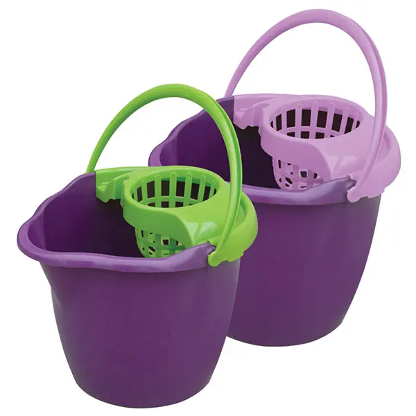 Функционална и практична кофа, изработена от пластмаса, с цедка.