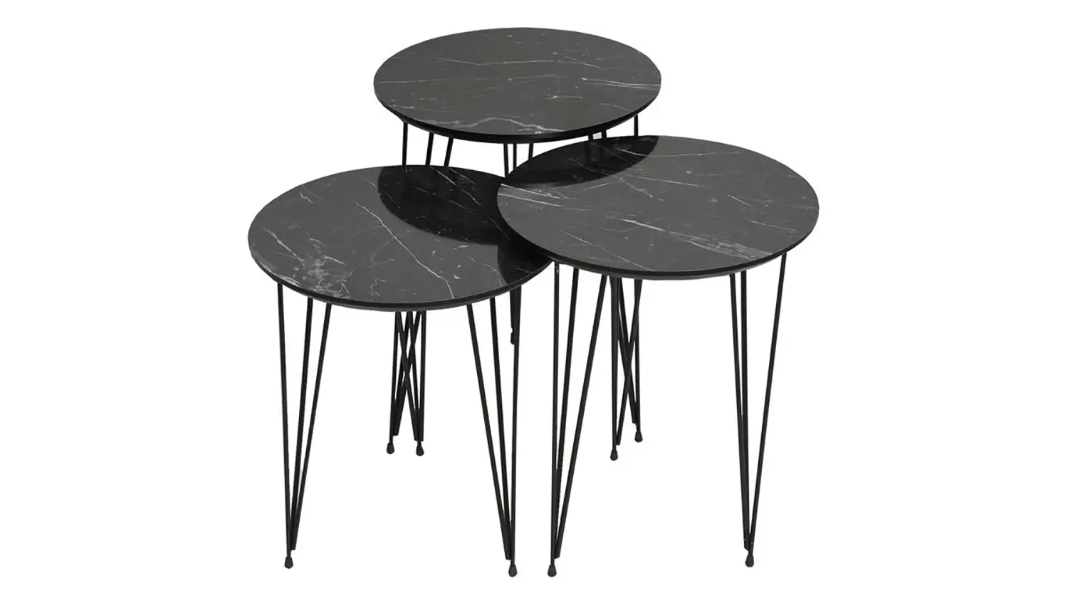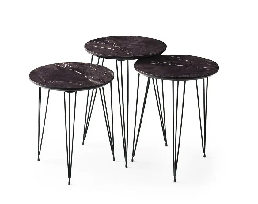 Помощна маса БИГЛА е функционална масичка за кафе. Състои се от три части, които могат да се използват и поотделно. Подходящи са за придаване на финален акцент в обзавеждането на всяко едно помещение. Помощната маса разполага с мраморна повърхност и метални крака в черен цвят.