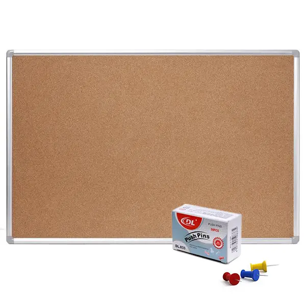 Корковата дъска 90х120 см е подходяща за използване с пинчета, за оставяне на бележки и съобщения и притежава елегантна алуминиева рамка.