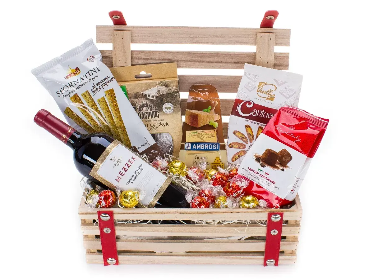 Подаръчната кутия е стилен подарък с вълнуващи вкусове. Зарадвайте близки, клиенти и партньори по специален повод. Кошницата е подходяща за подарък и на екип, и за офис.