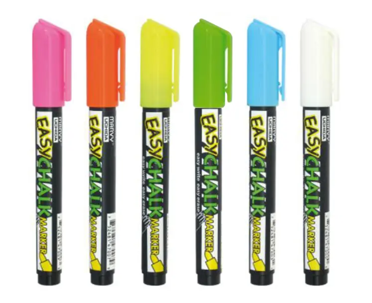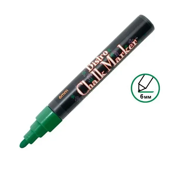 Маркер тебешир Marvy Uchida зелен за надписване и декориране на прозорци и други повърхности. Лека миризма, рисува като течен тебешир, на водна основа. Изтрива се от гладки повърхности с влажна кърпа. Не се изтрива от грапави и абсорбиращи повърхности.
