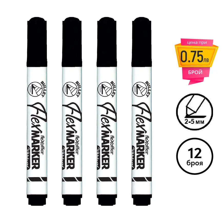 Лесен за изтриване маркер за бяла дъска, който изсъхва бързо без да оставя следи. Идеален за писане върху бели дъски, стъкло и други гладки повърхности. Мастило на алкохолна основа, което е нетоксично и напълно безопасно, отговарящо на европейски стандарти ASTM D-4236 и EN 71/3.