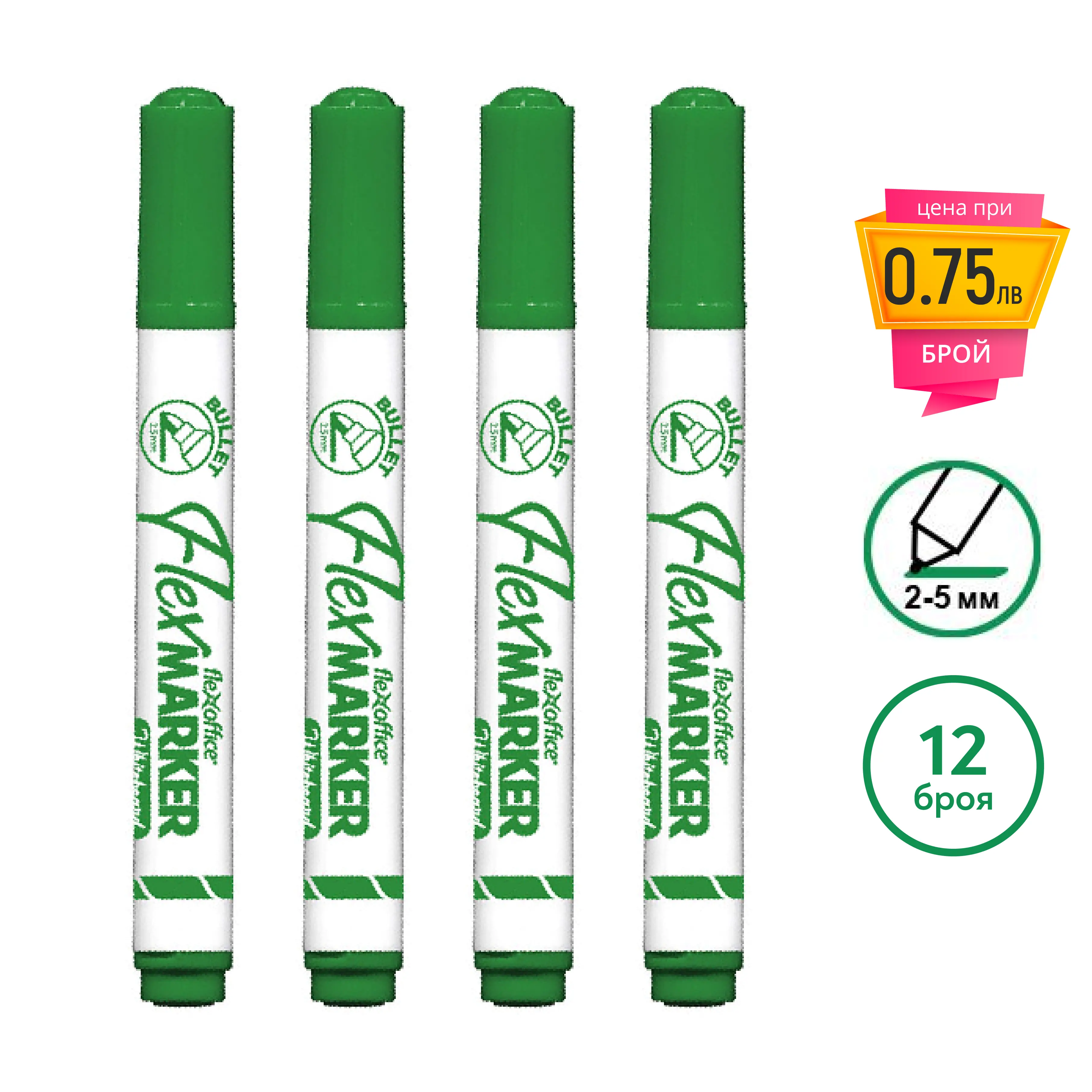 Маркер за бяла дъска FO-WB03 зелен 12 бр.