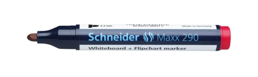 Маркерите за бяла дъска и флипчарт Maxx 290 са практични и удобни, тъй като изсъхват бързо върху дъска и не се просмукват в долните листа на флипчарти. Предимството на Maxx 290 е, че не са с натрапчив аромат на мастилото. Маркерите са с наситени цветове и възможност за презареждане.