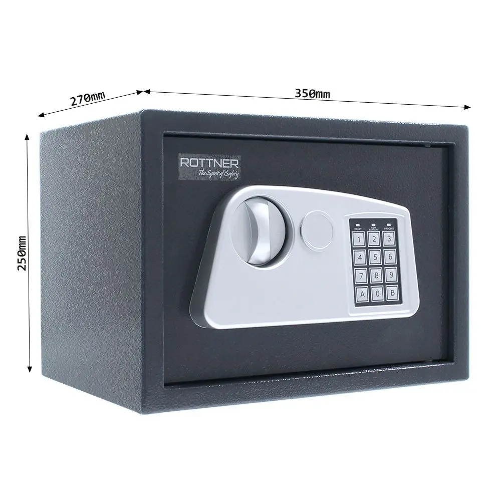 Метален сейф Speedy е дело на австрийската фирма Rottner. Удебелените размери на вратата на сейфа предоставят допълнителна сигурност за вашите лични вещи и бижута. Заключването се осъществява чрез електронна брава със 100 милиона възможности за комбинация. Също така разполага и с ергономична дръжка за по-лесното му отваряне.
