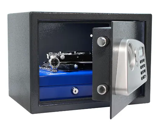 Метален сейф Trendy е дело на австрийската фирма Rottner. Удебелените размери на вратата на сейфа предоставят допълнителна сигурност за вашите лични вещи и бижута. Заключването се осъществява чрез електронна брава.