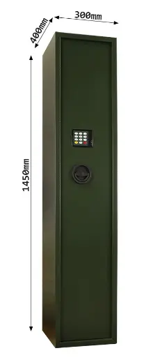 Металният сейф за оръжия UNS GT5 е предназначен за съхранение до 5 пушки, до 129 см. Оборудван е с вътрешно касово отделение.