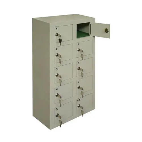 Металният шкаф FRT за лаптоп 78х39х20 см  е подходящ за съхранение на лаптопи, мобилни телефони и лични принадлежности. Притежава 10 самостоятелни отделения.
