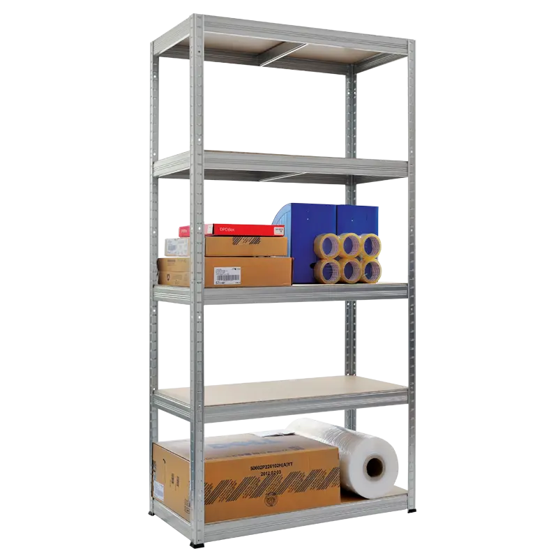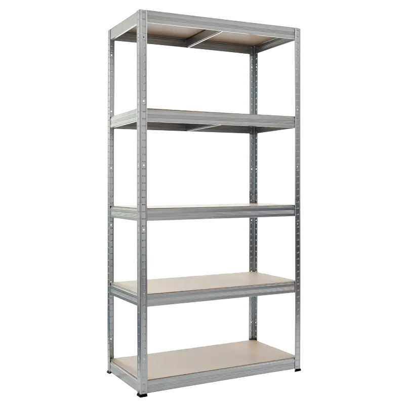 Стабилният стелаж с размери 180х90х45 см е изработен от галванизиран метал. Той има 5 МДФ рафта всеки, от които издържа на максимално натоварване до цели 350 кг. Стелажът се сглобява бързо и лесно чрез безболтов монтаж, а височината на рафтовете може да бъде регулирана според вашите нужди.