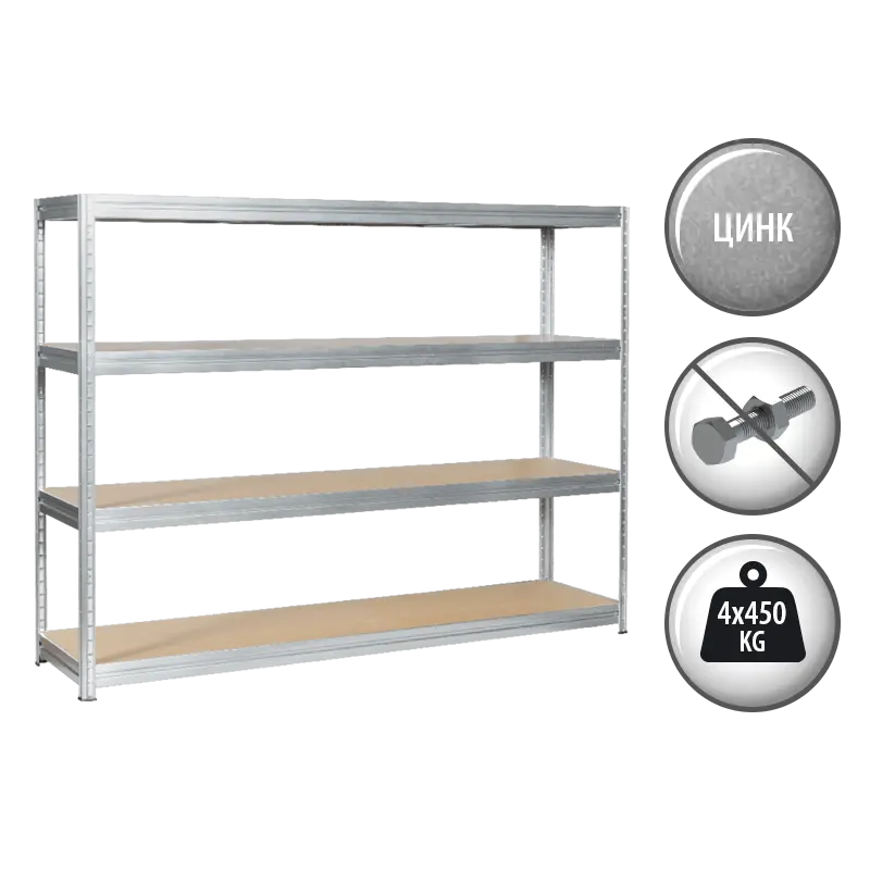 Метален стелаж BTL разполага с безболтова система за бърз и лесен монтаж. Моделът е с размери 177x240x60 см, има 4 регулируеми рафта от МДФ, всеки с максимална товароносимост до 450 кг.