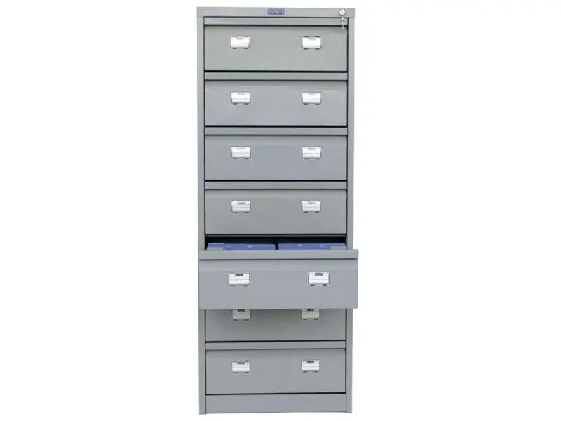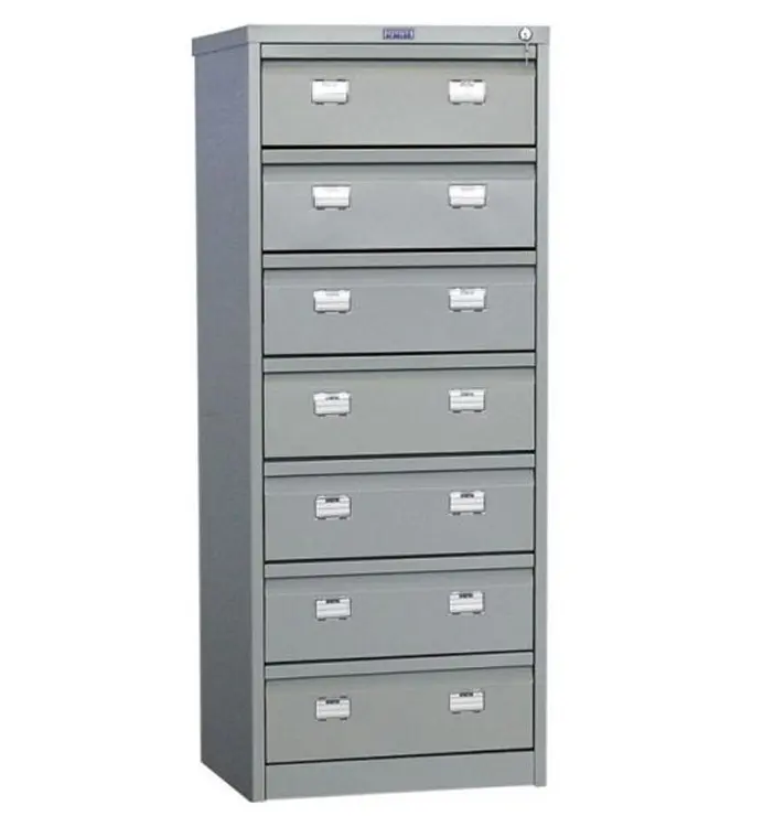Металната картотека AFC PMT 07 е функционален метален шкаф със седем чекмеджета, заключващи се централно. Специален механизъм предотвратява едновременното им отваряне. Подходяща е за съхранение на папки с формат А5-А6.